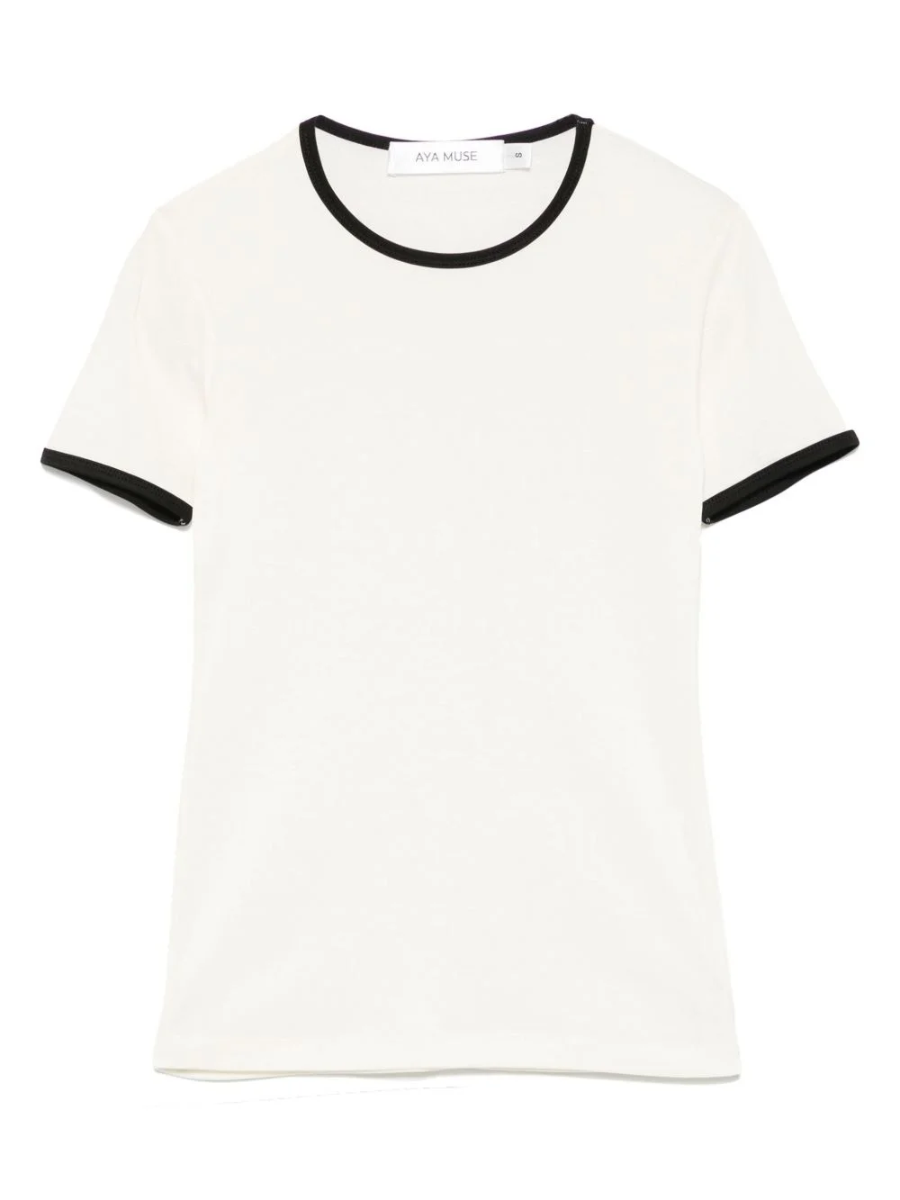 contrast-trim T-shirt Highlights - Light beige - Crew neck - Short sleeves - Straight hem Imported Composition Cotton 100% Washing instructions Machine Wash