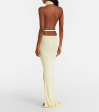 Designed in Los Angeles, Aya Muse has established itself as a go-to destination for standout essentials and empowering eveningwear. Made from beige-hued jersey, this gown features a draped cowl neckline and a slit at the left of the fitted, floor-sweeping skirt. Product Details - Material: 100% viscose - Care instructions: dry clean - Made in Korea - Designer color name: Almond Oil - Item color: beige - Collar: cowl neck - Closure: buttoned back - Long vent - Item number: P01110834 Size & Fit - True to size - Low back - Fitted - Stretchy fabric - The model seen in the picture is 178cm-5'10" and wearing a size XS