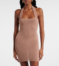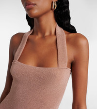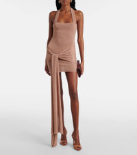 Make a lasting impression wherever you go with Aya Muse's designs, such as this minidress. Knitted with lame threads for a shimmering effect, the style has a halter neckline and draped detailing at the hips. Product Details - Material: 71% polyester, 29% metallic fibres - Care instructions: dry clean - Made in China - Designer color name: Rose Gold - Item color: pink - Detachable band - Item number: P01041693 Size & Fit - True to size - Low back - Fitted - Slightly stretchy fabric - Height of model is 174cm-68.5" and wears a size XS