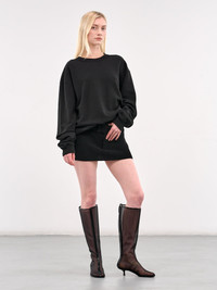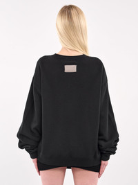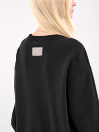 AYA MUSE sweater in black, paneled cotton construction, ribbed crewneck, dropped shoulders, long sleeves, rib-knit cuffs & hem, straight hem, oversized fit. Made in Japan 100% Cotton Standard Sizing Model is 5'6" wearing size S. Bust: 30" Waist: 24" Hips: 36"