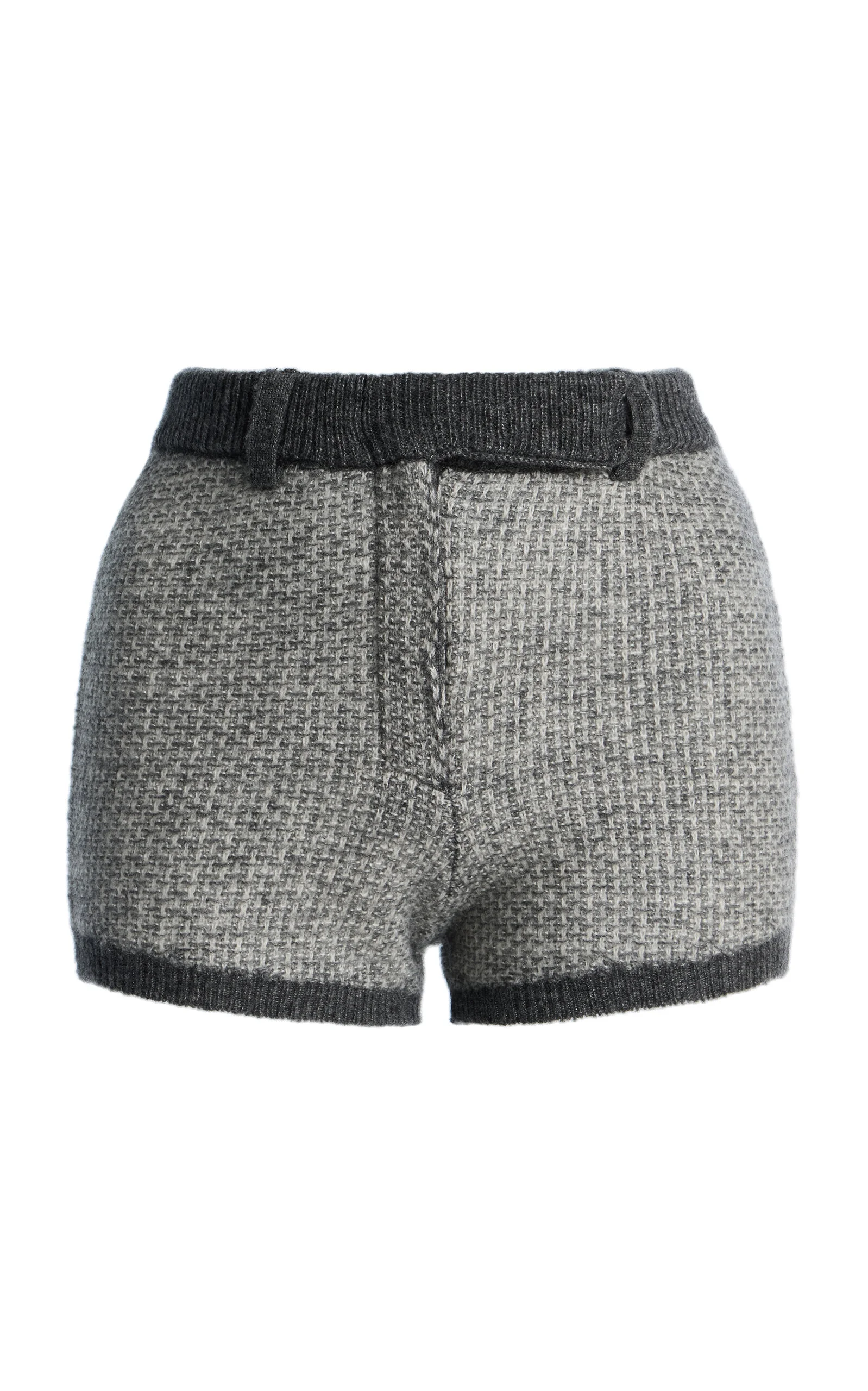 With an eye for cuts that flatter with sensual ease, L.A.-based Tina Rodiou has virtually filled a niche in the industry for hyper-cool, seductive, and notably well-priced minimalism that doesn’t compromise on sustainability—and which you won’t find anywhere else. The 'Avel' shorts have a micro-mini silhouette knit fro a blend of ultra-fine wool, cashmere and silk. Complete the look with the matching cardi. PRODUCT DETAILS - Pre-Fall '25 - Pull on - Composition: 54% ultra-fine merino wool, 23% cashmere, 23% filament silk - Designer color: Slate - Dry clean - Imported