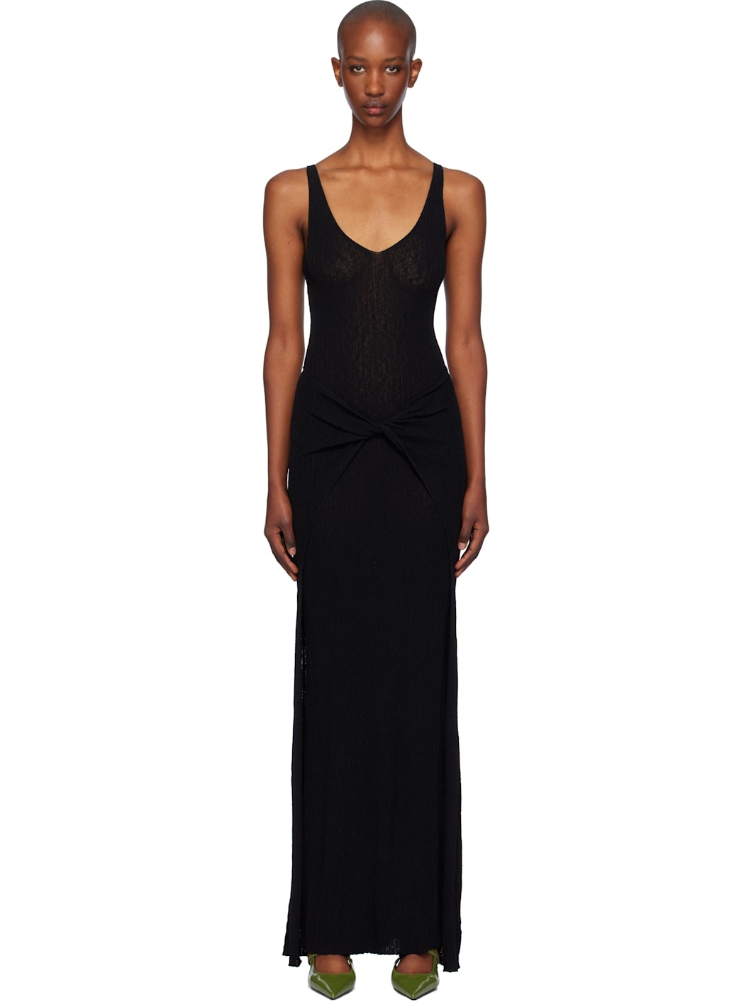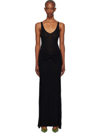 Semi-sheer rib-knit viscose- and nylon-blend maxi dress. · Layered construction · V-neck · Knotted accent at front Supplier color: Black