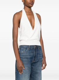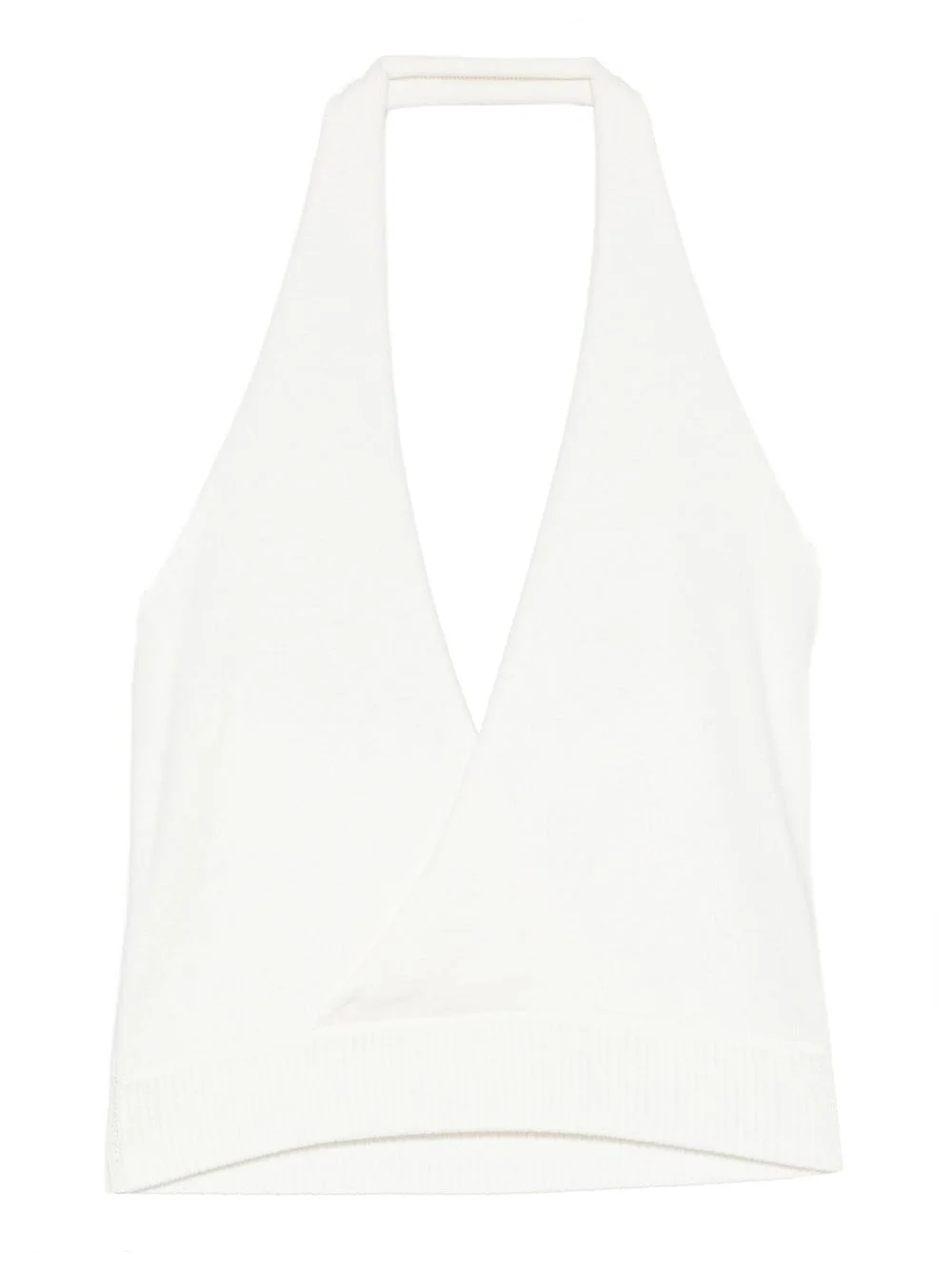 halterneck knitted tank top Highlights - White - Halterneck - Sleeveless - Knitted fabric - V-neckline - Cropped Imported Composition Cotton 67%, Nylon 33% SIZE & FIT Model measurements Height 5 ft 11 in(1.8 m) Bust/Chest 31.49 in(80 cm) Hips 36.61 in(93 cm) Waist 24.4 in(62 cm) Washing instructions Dry Clean Only