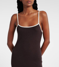 Designed in Los Angeles, Aya Muse has established itself as a go-to destination for standout essentials and empowering eveningwear. Made from stretchy jersey, this minimalist slip dress is finished with playful contrast trims. Product Details - Material: 60% viscose, 35% polyamide, 5% cashmere - Care instructions: hand wash - Made in Portugal - Designer color name: Brown Cream - Item color: brown - Item number: P01044789 Size & Fit - True to size - Stretchy fabric - The model seen in the picture is 178cm-5'10" and wearing a size XS