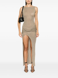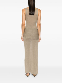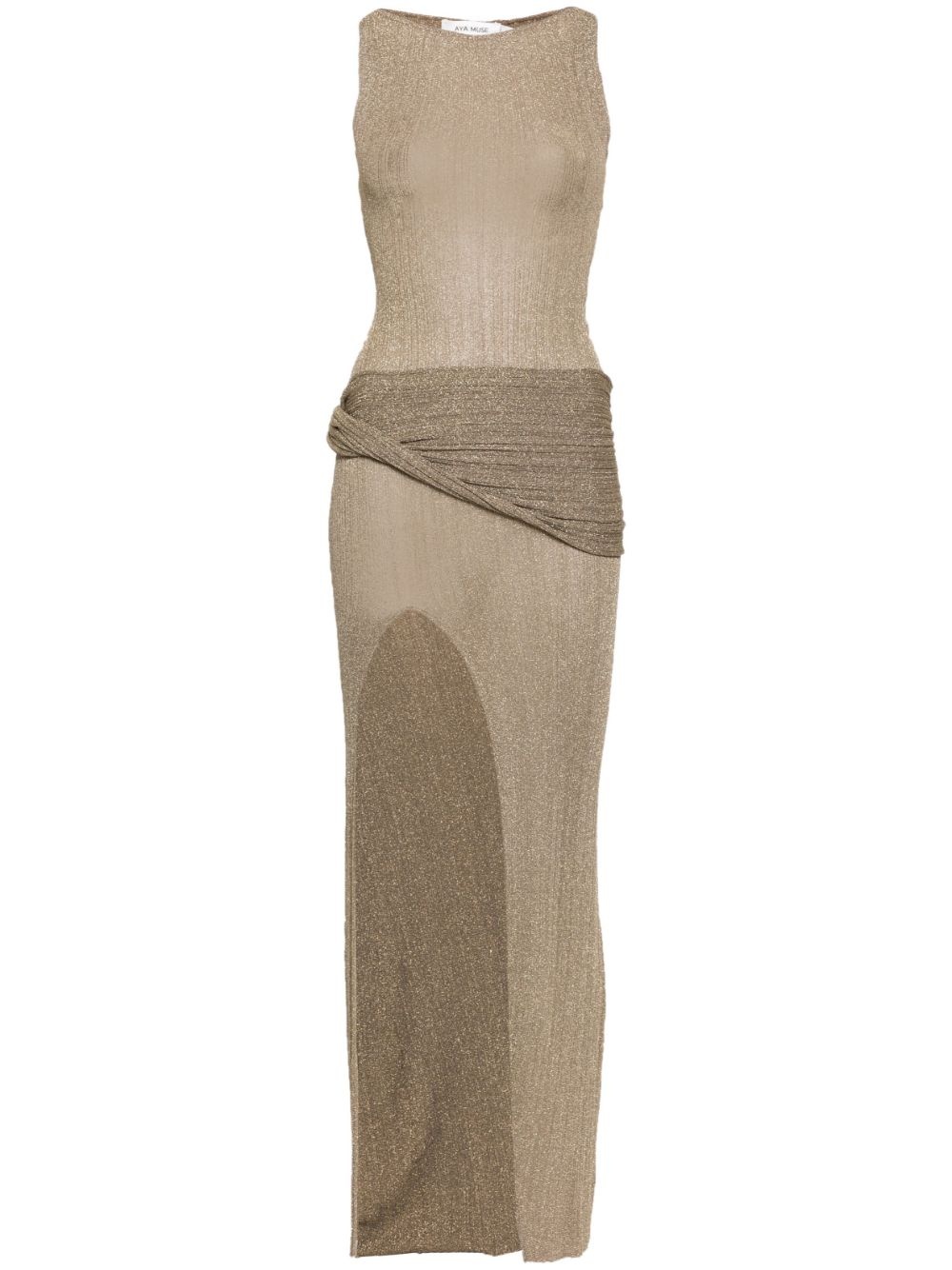 Kei maxi dress Highlights - Gold-tone - Fine ribbed - Metallic threading - Semi-sheer construction - Draped panel detail - Crew neck - Sleeveless - Fitted waistline - Side slit - Straight hem - Floor-length Imported Composition Polyester 71%, Metallic Fibre 29% SIZE & FIT Model measurements Height 5 ft 10 in(1.79 m) Bust/Chest 34.25 in(87 cm) Hips 37 in(94 cm) Waist 24.8 in(63 cm) FittingInformation Designed for a close fit throughout Made with a lightweight knit, this piece offers some stretch This piece fits true to size – take your usual size