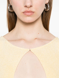 ribbed-knit maxi dress Highlights - Light yellow - Front hook and eye fastening - Keyhole neck - Sleeveless Imported Composition Viscose 60%, Nylon 40% SIZE & FIT Model measurements Height 5 ft 9 in(1.75 m) Bust/Chest 31.88 in(81 cm) Hips 34.64 in(88 cm) Waist 24.01 in(61 cm) FittingInformation Designed for a close fit throughout Made with a midweight knit, this piece offers some stretch