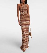 Knitted striped silk-blend maxi skirt