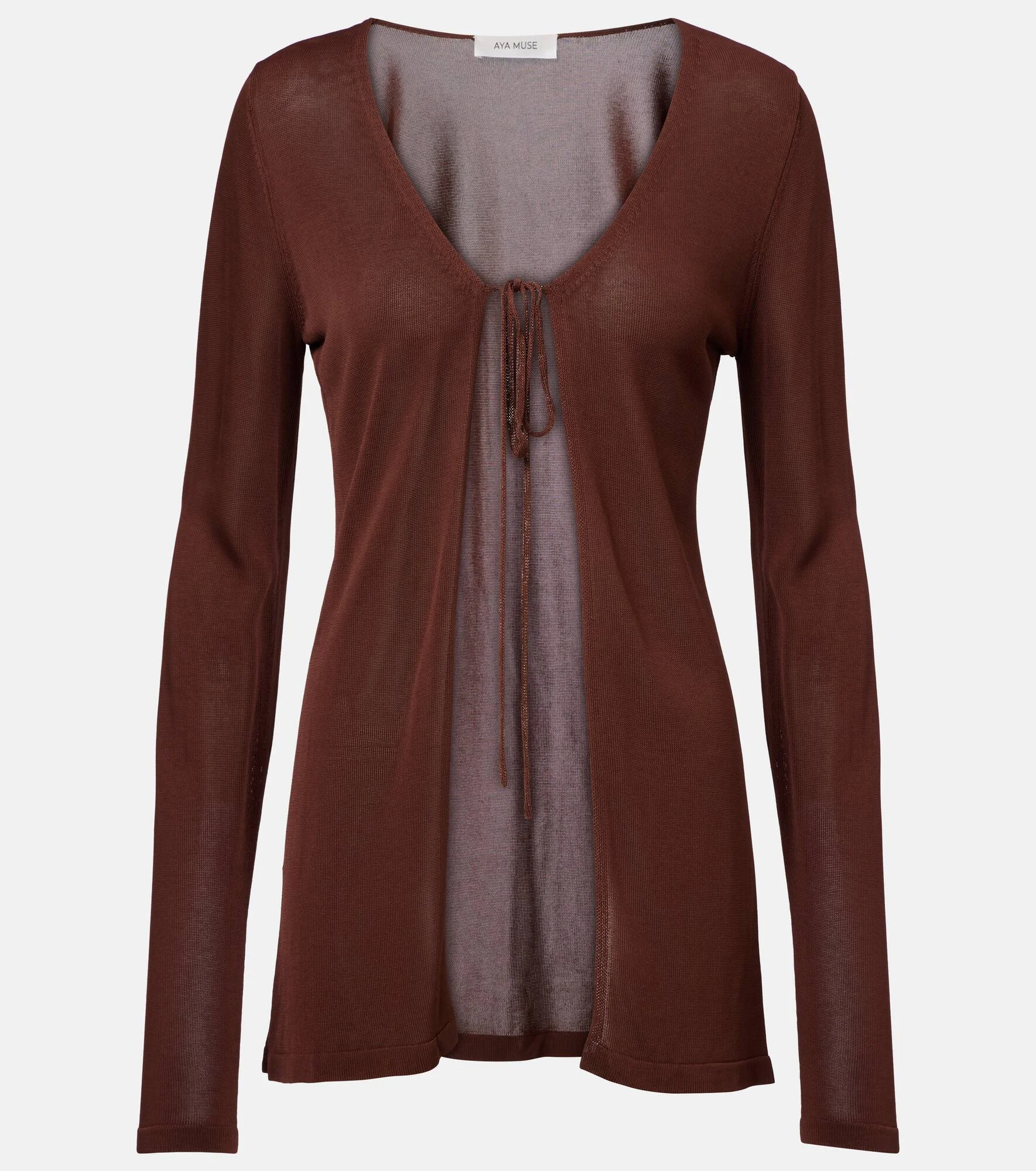 Designed in Los Angeles, Aya Muse provides elevated essentials such as this top. The long-sleeve style is made of lightweight knit fabric to a skin-reveling silhouette and secures across the chest with self-ties. Product Details - Material: 100% viscose - Care instructions: dry clean - Made in China - Designer color name: Dark Brown - Item color: brown - Closure: self-ties - Item number: P01041689 Size & Fit - True to size - Cinched waist - Non-stretchy fabric - Falls below the hip - The model seen in the picture is 178cm-5'10" and wearing a size XS