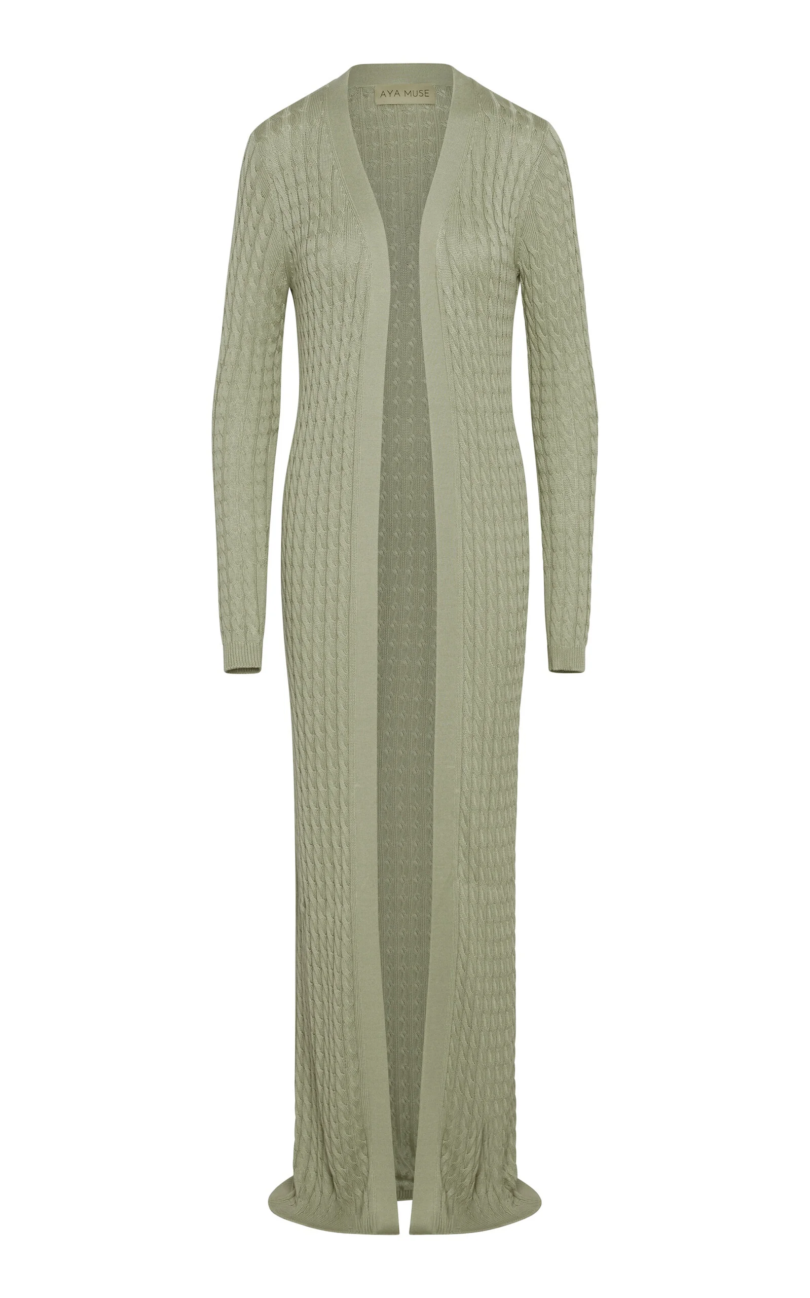 Mira Cable-Knit Silk-Blend Cardigan light grey
