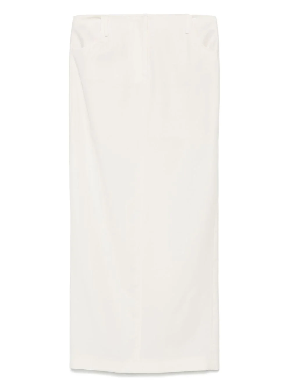 twill maxi skirt Highlights - White - Concealed front zip fastening - Two side slit pockets - Two rear patch pockets - Rear slit Imported Composition Outer: Wool 50%, Polyester 50% Lining: Polyester 100% SIZE & FIT Model measurements Height 5 ft 10 in(1.78 m) Bust/Chest 33.46 in(85 cm) Hips 36.22 in(92 cm) Waist 23.22 in(59 cm) FittingInformation This maxi-length skirt is intended to be worn low on the hips The vented hem offers movement at the rear Made from a midweight non-stretch fabric