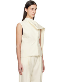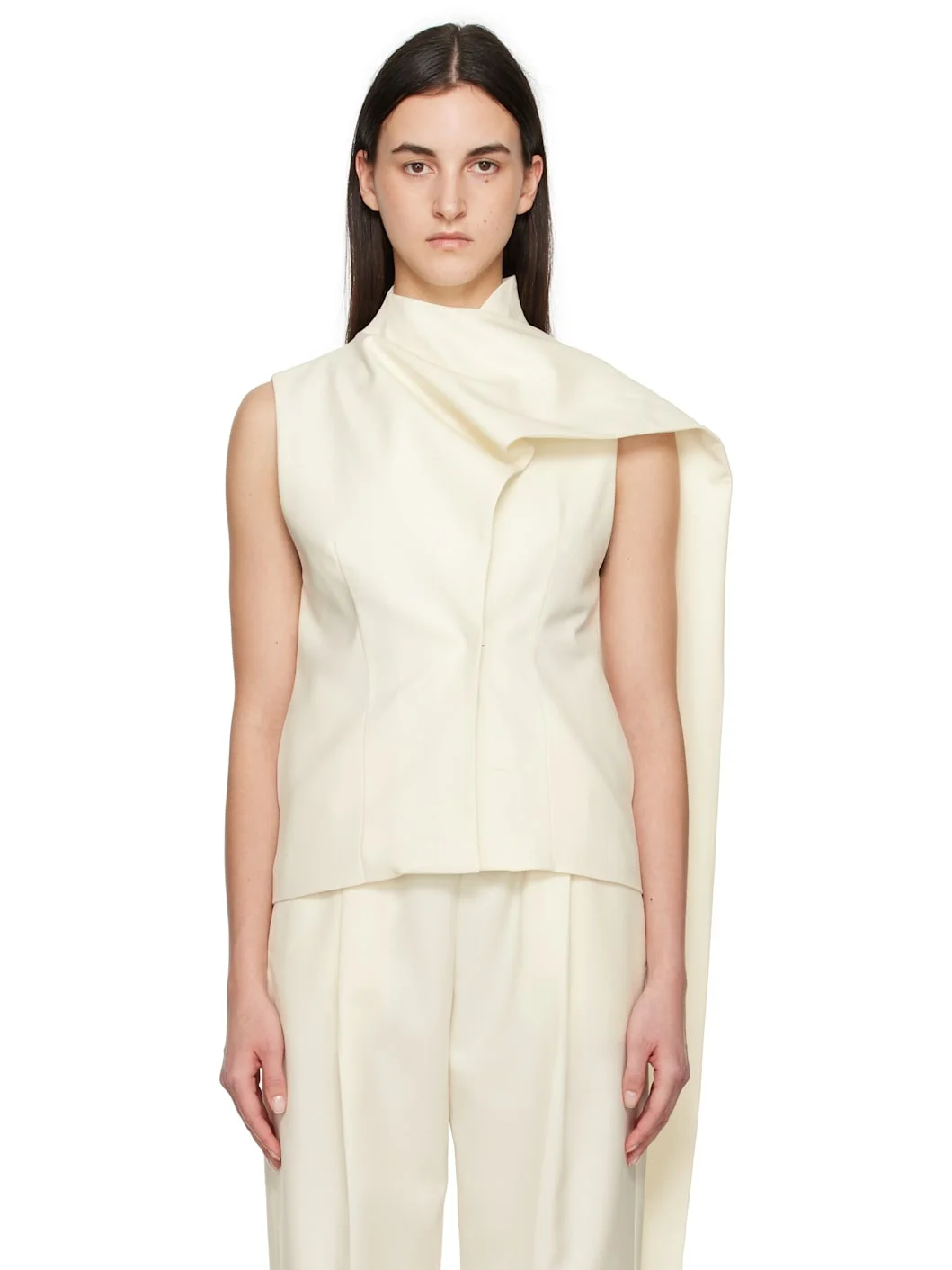 Wool-blend twill top. · Wrap construction · Draped extended trim at funnel neck · Concealed button closure · Darts at front and back · Seam pockets · Partially lined Supplier color: White Body: 50% wool, 50% polyester. Lining: 100% polyester. Made in Georgia 251188F111007