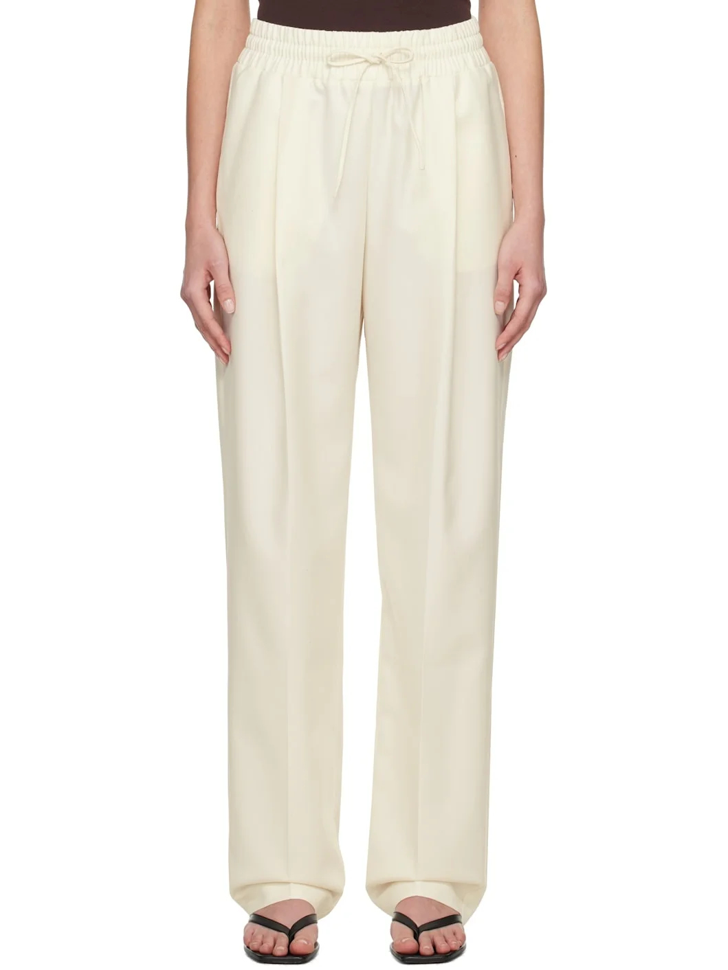 Wool-blend twill trousers. · Drawstring at elasticized waistband · Three-pocket styling · Pleats at front · Creased legs Supplier color: White 50% wool, 50% polyester. Made in Georgia 251188F086012
