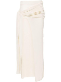 Orcus midi skirt Highlights - White - Cotton blend - Ribbed knit - Pleat detailing - Draped panel detail - High-waisted - Elasticated waistband - Side slit - Straight hem - Mid-length Imported Composition Cotton 75%, Polyamide 25% SIZE & FIT Model measurements Height 5 ft 10 in(1.79 m) Bust/Chest 34.25 in(87 cm) Hips 37 in(94 cm) Waist 24.8 in(63 cm) FittingInformation Designed with an asymmetric hem, this skirt is intended to be worn low on the hips The elasticated waist allows for a comfortable fit Made with a midweight knit, this piece offers some stretch This piece fits true to size – take your usual size