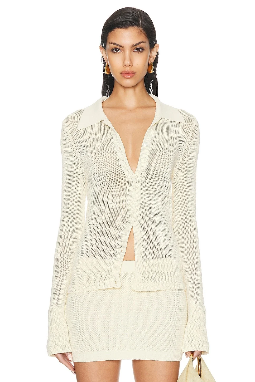 Details - 72% cotton, 28% polyamide - Made in China - Machine wash - Front button closure - Open knit fabric - Garment is made with a semi-sheer fabric, undergarments can show through - Item not sold as a set - Our Style No. AYAF-WK10 - Manufacturer Style No. AMR2565