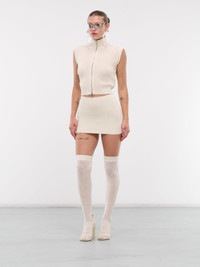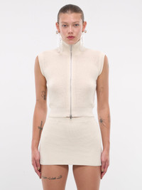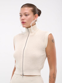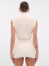 AYA MUSE vest in white, cotton-nylon blend, paneled knit construction, turtleneck, front exposed two-way zip closure, sleeveless, rib-knit collar & armscyes & hem, straight hem, slim fit. Made in China 75% Cotton 25% Polyamide Standard Sizing