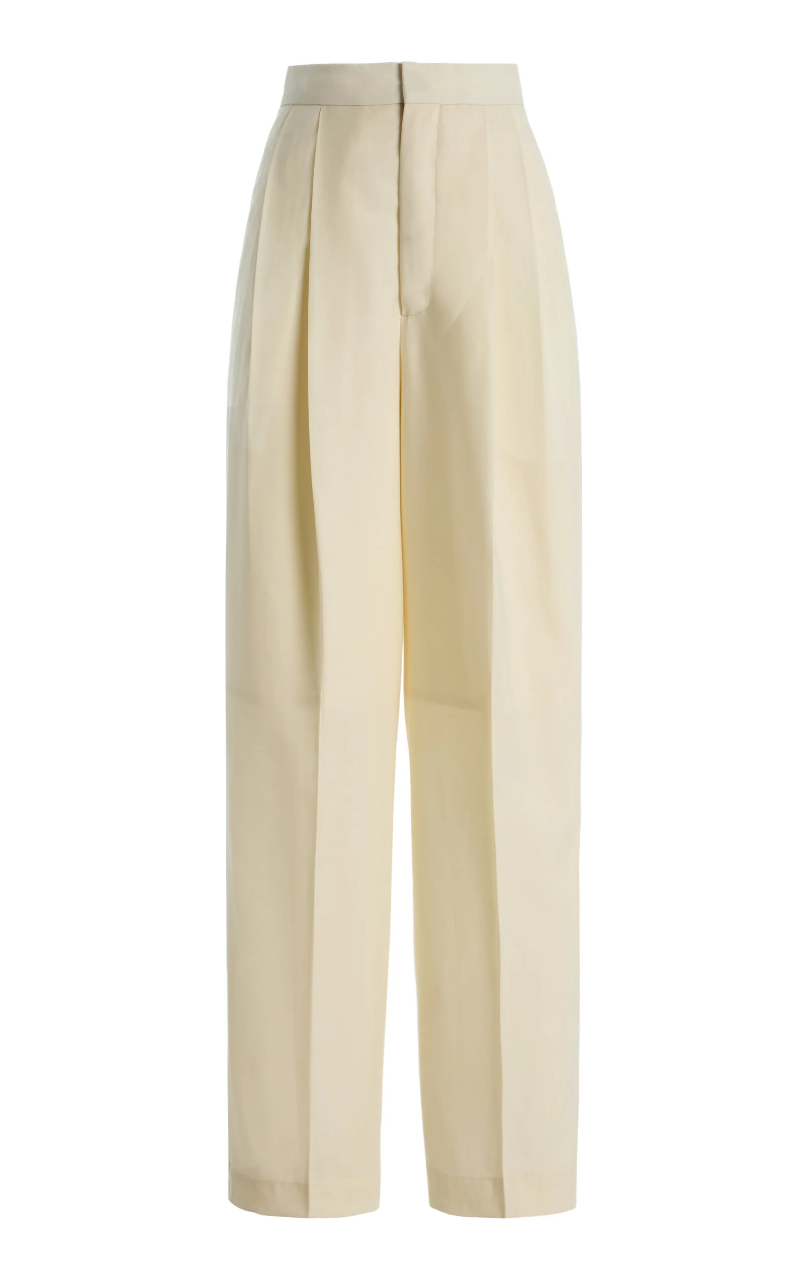 With an eye for cuts that flatter with sensual ease, L.A.-based Tina Rodiou has virtually filled a niche in the industry for hyper-cool, seductive, and notably well-priced minimalism that doesn’t compromise on sustainability—and which you won’t find anywhere else. The 'Orin' trouser has wide legs cut from wool that's double-pleated at the high-cut waist. PRODUCT DETAILS - Fall '25 - Zip fastening - Composition: 100% wool - Designer color: Opal - Dry clean - Imported