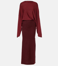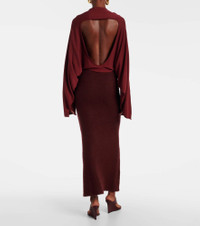 Designed in Los Angeles, Aya Muse has established itself as a go-to destination for empowering eveningwear. The Pine maxi dress features an elegant, flowing cape and a cashmere and cotton floor-length skirt. Product Details - Material: 77% viscose, 15% polyamide, 8% silk - Care instructions: dry clean - Made in Korea - Designer color name: Burgundy - Item color: burgundy - Material II: 63% cashmere, 37% cotton - Item number: P01088300 Size & Fit - True to size - Low back - Loose bodice, fitted skirt - Stretchy fabric - The model seen in the picture is 178cm-5'10" and wearing a size XS
