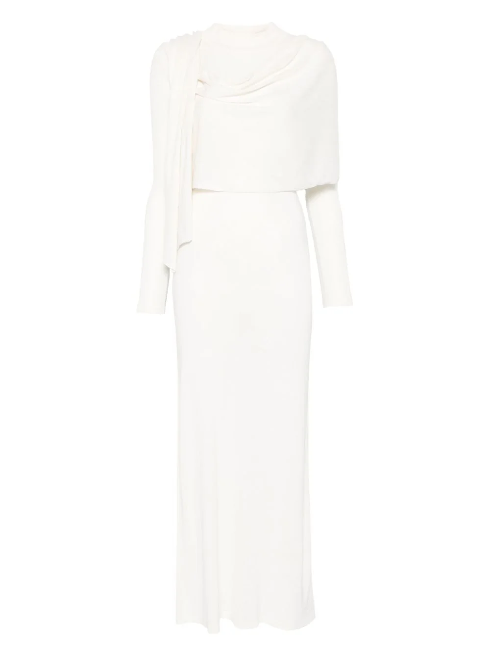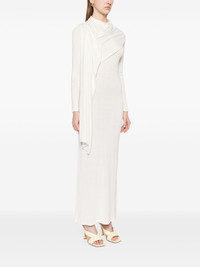 scarf-detail longsleeved maxi dress Highlights - White - Mock neck - Straight hem Imported Composition Silk 55%, Viscose 45% SIZE & FIT Model measurements Height 5 ft 9 in(1.75 m) Bust/Chest 31.88 in(81 cm) Hips 34.64 in(88 cm) Waist 24.01 in(61 cm) FittingInformation Designed for a close fit throughout Made with a lightweight knit, this piece offers some stretch