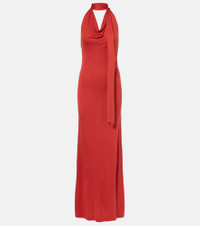 Designed in Los Angeles, Aya Muse has established itself as a go-to destination for standout essentials and empowering eveningwear. Made from silk-blend jersey, this gown has a fitted silhouette, a cowl neckline, and a scarf detail for an added dose of elegance. Product Details - Material: 55% silk, 45% viscose - Care instructions: dry clean - Made in Korea - Designer color name: Ketchup - Item color: red - Collar: cowl neck - Self-tie neck - Item number: P01110836 Size & Fit - True to size - Low back - Fitted - Slightly stretchy fabric - The model seen in the picture is 178cm-5'10" and wearing a size XS