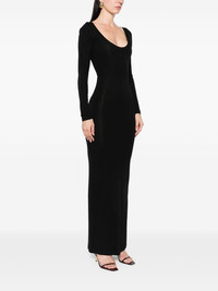 scoop-neck maxi dress Highlights - Black - Straight hem - Long sleeves - Scoop back Imported Composition Viscose 97%, Elastane 3% SIZE & FIT Model measurements Height 5 ft 10 in(1.78 m) Bust/Chest 33.46 in(85 cm) Hips 36.22 in(92 cm) Waist 23.22 in(59 cm) FittingInformation Designed for a close fit throughout Made from a midweight stretch fabric, this piece offers elasticity and flexibility when worn
