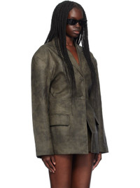 Grained faux-leather jacket. Fading throughout. · Notched lapel · Button closure · Welt and flap pockets · Darts at front and back · Padded shoulders · Welt pockets at interior · Full twill lining Supplier color: Faded gray