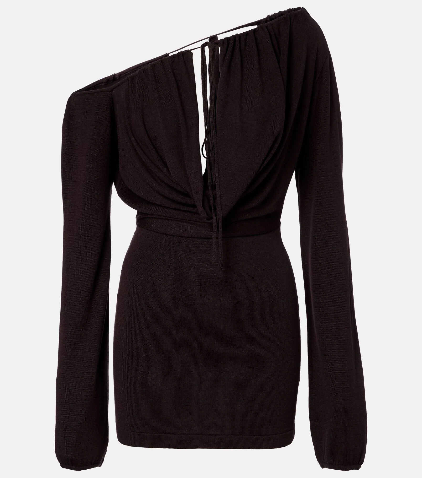 Designed in Los Angeles, Aya Muse has established itself as a go-to destination for standout essentials and empowering eveningwear. Designed with an asymmetric neckline, the Sola silk-blend minidress showcases a draped bodice with keyhole cutouts. Product Details - Material: 55% silk, 45% viscose - Care instructions: dry clean - Made in Korea - Designer color name: Chocolate - Item color: brown - Sleeves: long-sleeved - Closure: self-ties - Item number: P01100613 Size & Fit - True to size - Low back - Loose bodice, fitted skirt - Stretchy fabric - The model seen in the picture is 178cm-5'10" and wearing a size XS