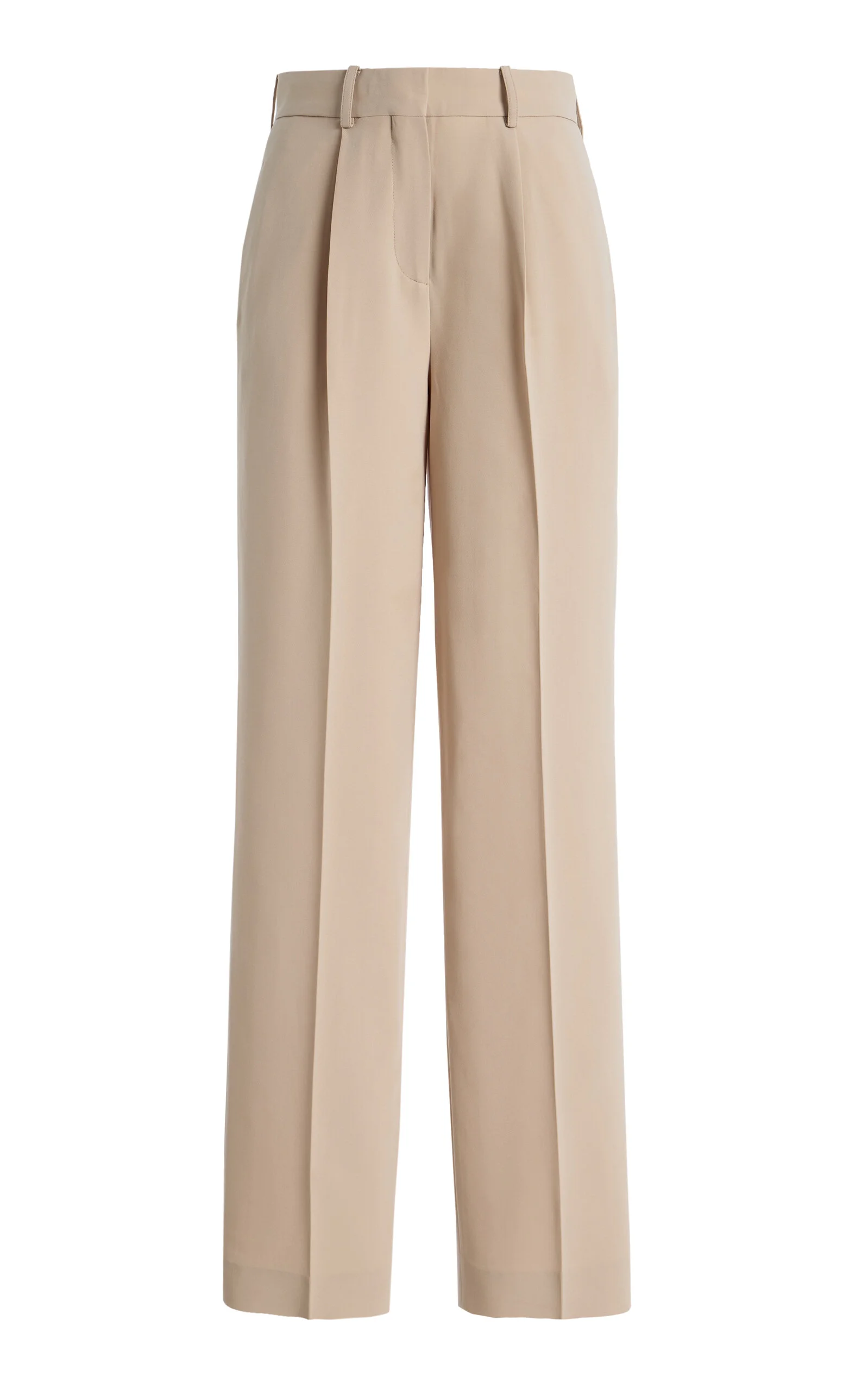 With an eye for cuts that flatter with sensual ease, L.A.-based Tina Rodiou has virtually filled a niche in the industry for hyper-cool, seductive, and notably well-priced minimalism that doesn’t compromise on sustainability—and which you won’t find anywhere else. The 'Soli' trouser has straight legs that are pleated at the hip, transitioning to stitched creases for a polished finish. PRODUCT DETAILS - Fall '25 - Zip fastening - Composition: 65% acetate, 35% polyester - Designer color: Macadamia - Dry clean - Imported