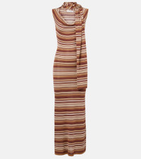 This dress from Aya Muse is cut from a silk-blend fabric, and detailed with horizontal stripes throughout. The midi-length design stands out with scarf detailing and a loosely draped neckline. Product Details - Material: 55% silk, 45% viscose - Care instructions: dry clean - Made in China - Designer color name: Brown Stripe - Item color: brown, burgundy, beige - Item number: P01041687 Size & Fit - True to size - Fitted - Slightly stretchy fabric - The model seen in the picture is 178cm-5'10" and wearing a size XS