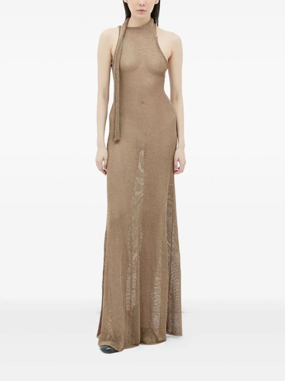 Tera halterneck mesh maxi dress Highlights - Beige - Mesh - Halterneck - Floor-length Imported Composition Rayon 100% Washing instructions Read Manufacturer Guidelines