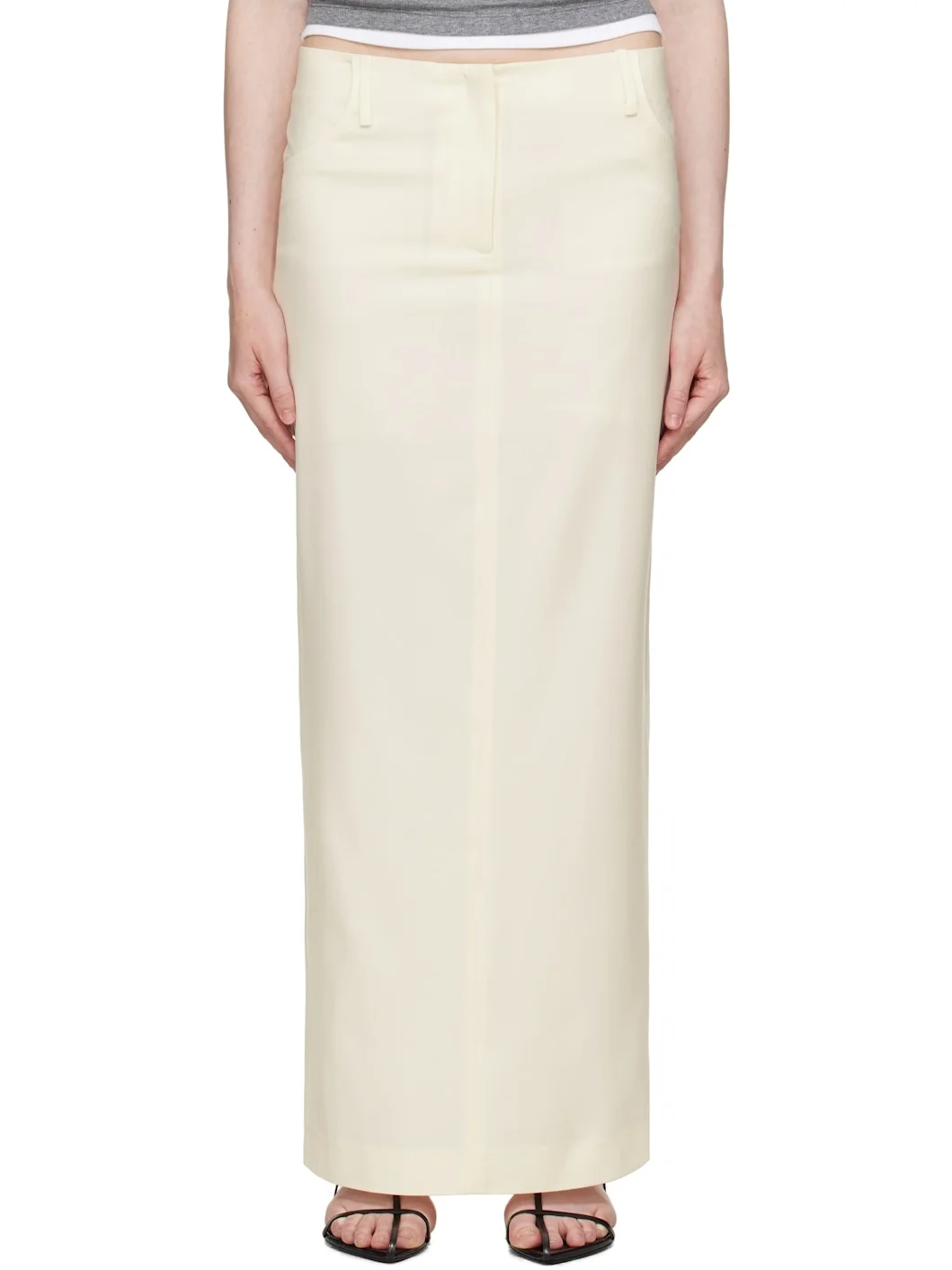 Wool-blend twill maxi skirt. · Belt loops · Four-pocket styling · Zip fly · Central vent at back hem · Partial satin lining Supplier color: White Body: 50% wool, 50% polyester. Lining: 100% polyester. Made in Georgia 251188F093010