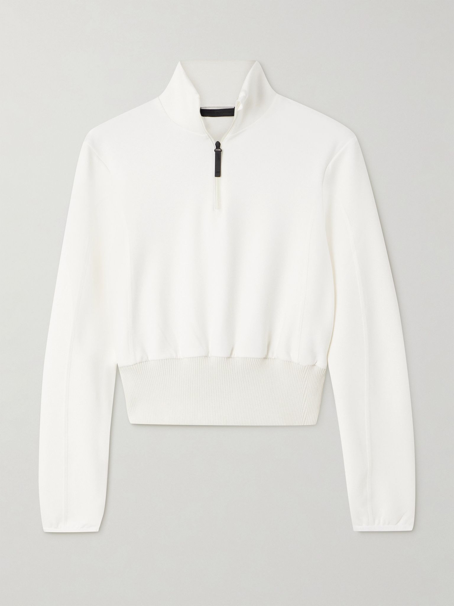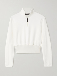 Aztech Mountain 'Ajax' sweater is designed to keep you warm and comfortable both on the slopes and in the lodge. It's made from jersey for a loose fit tempered by a fitted, ribbed panel at the hem and has an adjustable zipped neckline. The thumb loops keep the sleeves perfectly in place. Size & Fit - Fits true to size, take your normal size - Designed for a slightly loose fit - Ribbed hem - Mid-weight, slightly stretchy fabric - Model is 177cm/ 5'10" and is wearing an IT 40 Model measurements: - Bust: 79cm/ 31" - Waist: 63cm/ 25” - Hip: 90cm/ 35.5” Details & Care - White jersey - Zip fastening along front - 87% polyamide, 13% elastane - Machine wash - Dry clean - Designer color: Cloud White