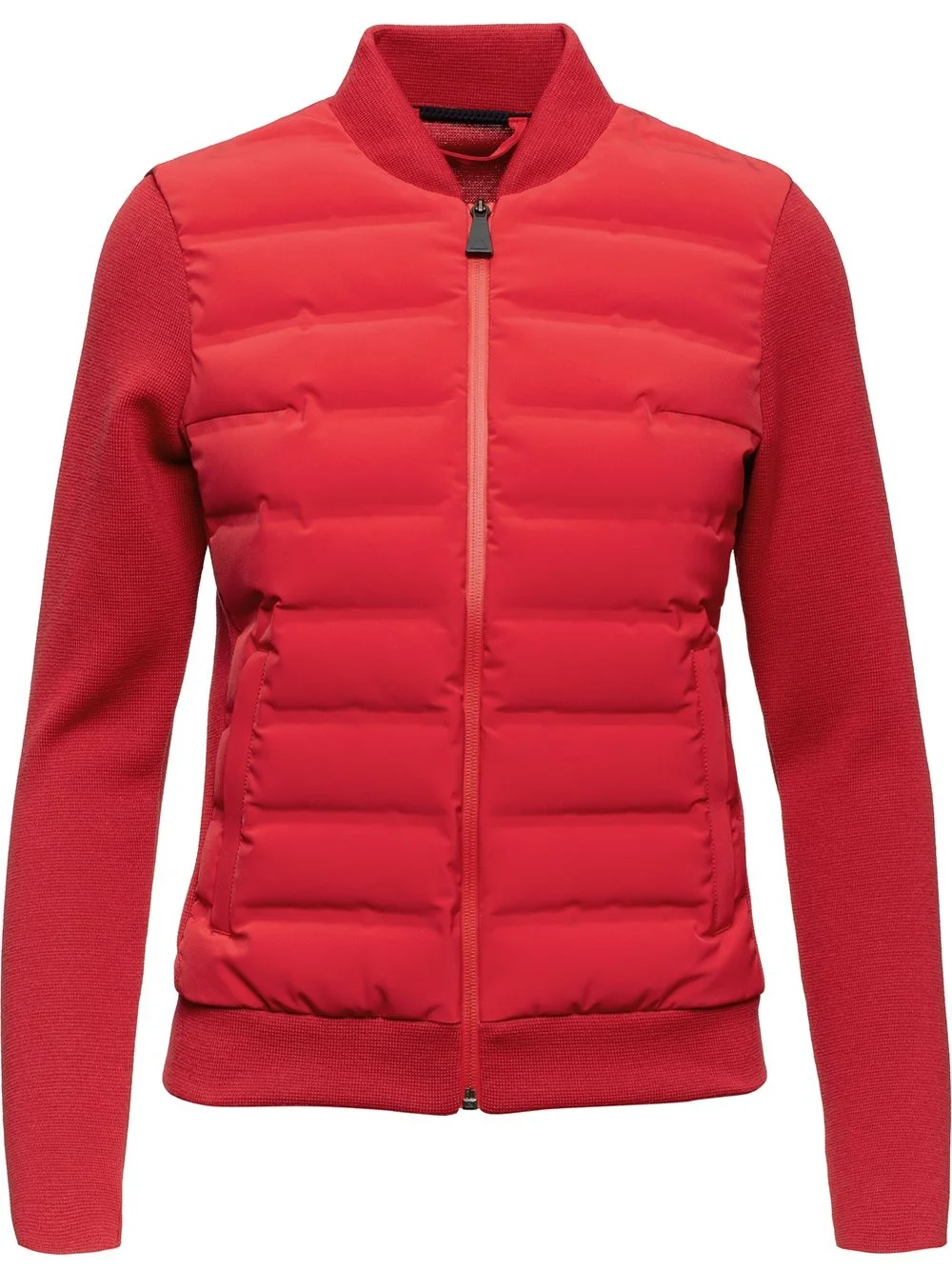Dale of Aspen panelled knitted jacket red wool shell puffer panel front zip fastening long sleeves ribbed detailing Imported Composition Lining: Feather Down 100% Outer: Wool 100%, Polyamide 90%, Elastane 10% Washing instructions Specialist Cleaning