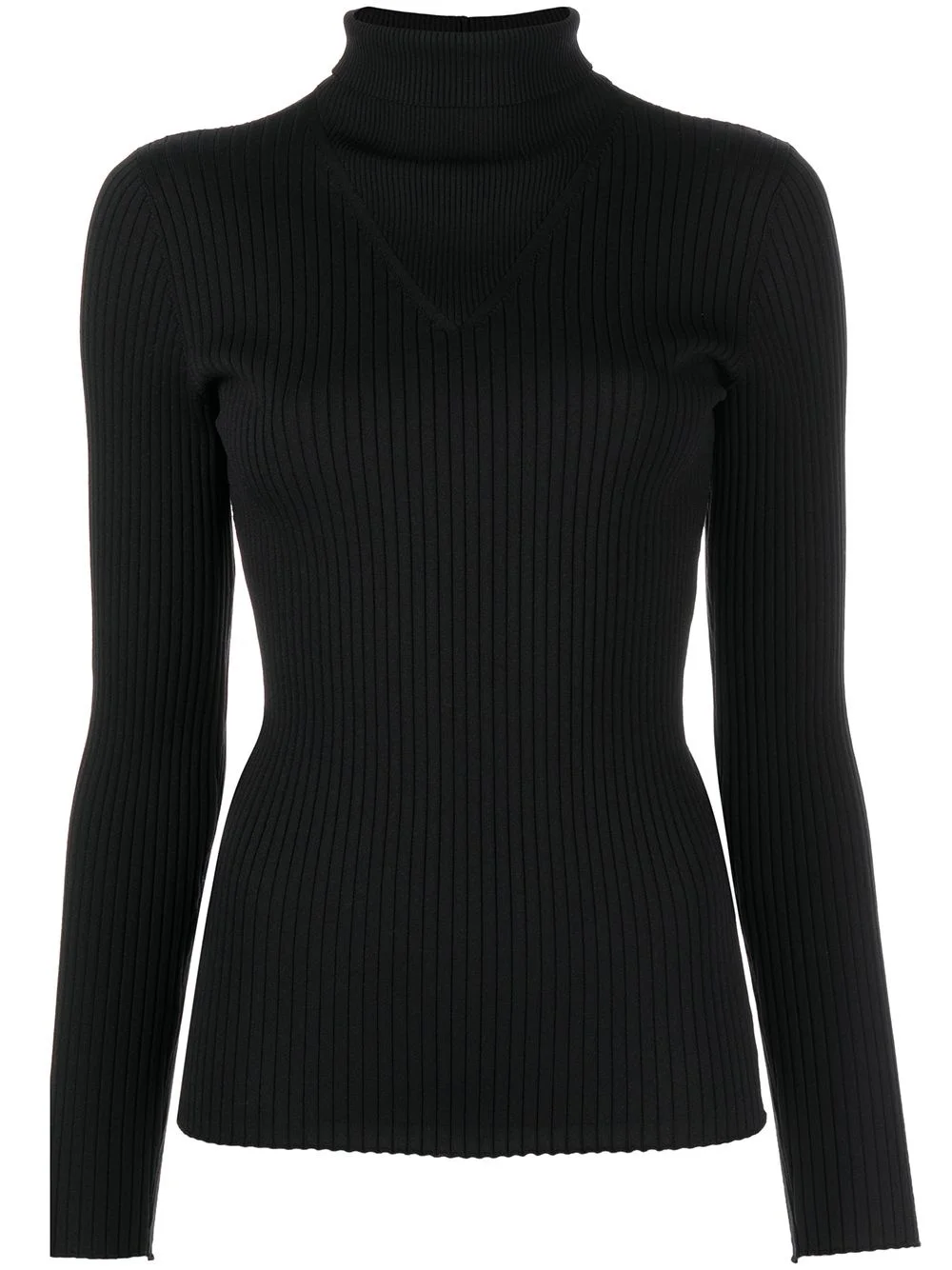 El Paradiso roll neck sweater space black ribbed knit roll neck long sleeves straight hem stretch-design Imported Composition Body: Nylon 97%, Elastane 3% SIZE & FIT Model measurements Height 5 ft 10 in(1.77 m) Bust/Chest 33.85 in(86 cm) Hips 35.03 in(89 cm) Waist 24.01 in(61 cm) FittingInformation This piece fits true to size. We recommend you get your regular size Cut for a close fit Made with a mid-weight fabric Washing instructions Hand Wash
