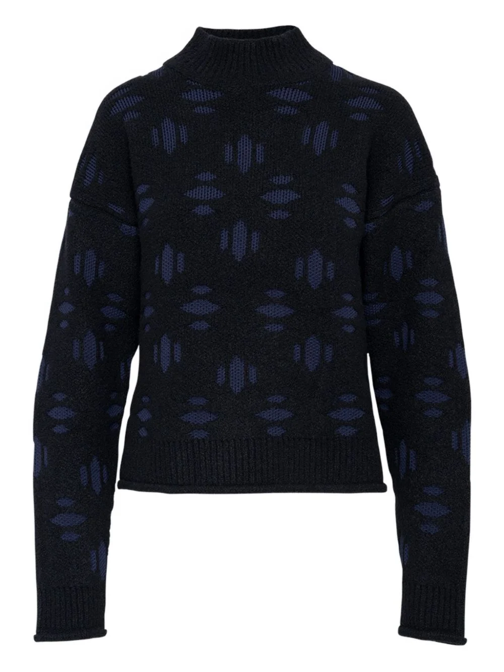 snowflake sweater Highlights - Black - Snowflake pattern - High neck - Long sleeves - Ribbed hem - Ribbed cuffs Made in Italy Composition Virgin Wool 64%, Polyester 25%, Cashmere 10%, Elastane 1%