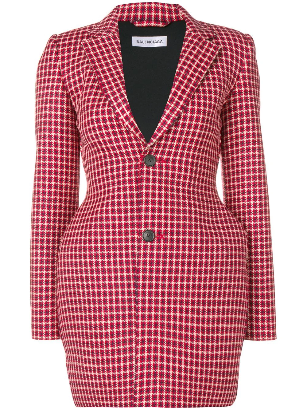 3D houndstooth jacket The Spanish fashion house of Balenciaga offers cutting edge styles that balance clean, modern silhouettes with strong shapes and innovation with refinement. This red virgin wool 3D houndstooth jacket from Balenciaga features notched lapels, long sleeves, a front button fastening and a fitted waist. Made in France Composition Lining: Polyurethane 100%, Viscose 65%, Polyamide 30%, Spandex/Elastane 5% Outer: Virgin Wool 100% SIZE & FIT Model measurements Height 5 ft 10 in(1.78 m) Bust/Chest 33.46 in(85 cm) Hips 36.22 in(92 cm) Waist 23.22 in(59 cm) Washing instructions Dry Clean Only