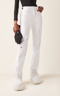 The label renowned for its avant-garde creativity and uncompromising standard returns with a skiwear collection notable for its practical, yet ever-so chic appeal. Crafted from water and wind-resistant, bonded nylon, these ski pants have a high-waisted, kick-flare silhouette fit with snow gaiters to keep the elements at bay. Wear it with the matching ski jacket. PRODUCT DETAILS - Suitable for sporting conditions - Featured in the Resort '24 collection - Zip and button fastening - Composition: Bonded stretch nylon - Spot clean - Made in France SIZE & FIT - Our model is 180cm/ 5'11" and wearing a size FR 34 - Designed for a slim fit
