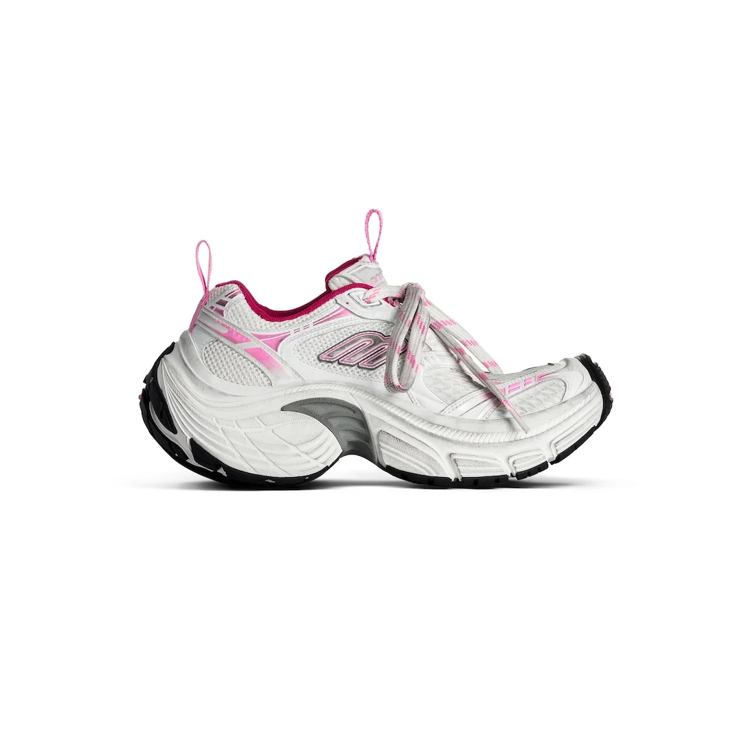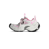 6XL Sneaker in white, light pink, grey and black mesh, polyurethane and polyester PRODUCT DETAILS • Leather free • Sneaker • Worn-out effect • Mesh, polyurethane and polyester • Balenciaga logo debossed on the tongue • 3B sports icon artwork in rubber on each side • Sporty B logo on the upper • Shoe size embroidered at back • Back and tongue pull-on tab • Made in China Upper: polyurethane, polyester - Sole: rubber, EVA, TPU - Insole: foam