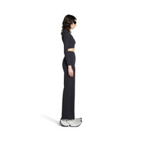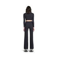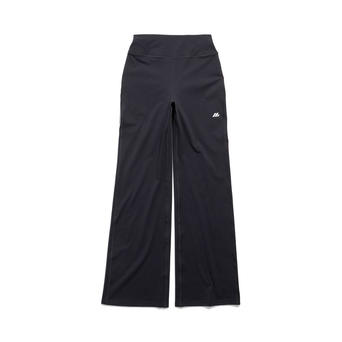 Activewear Flared Slim Pants in black matte spandex PRODUCT DETAILS • Matte spandex • Tone-on-tone overlock stitching • Mid-waist • Elasticated waistband • Flared leg • Activewear logo printed at front • Reflective logo • Made in Italy Material: 58% polyamide, 42% elastane