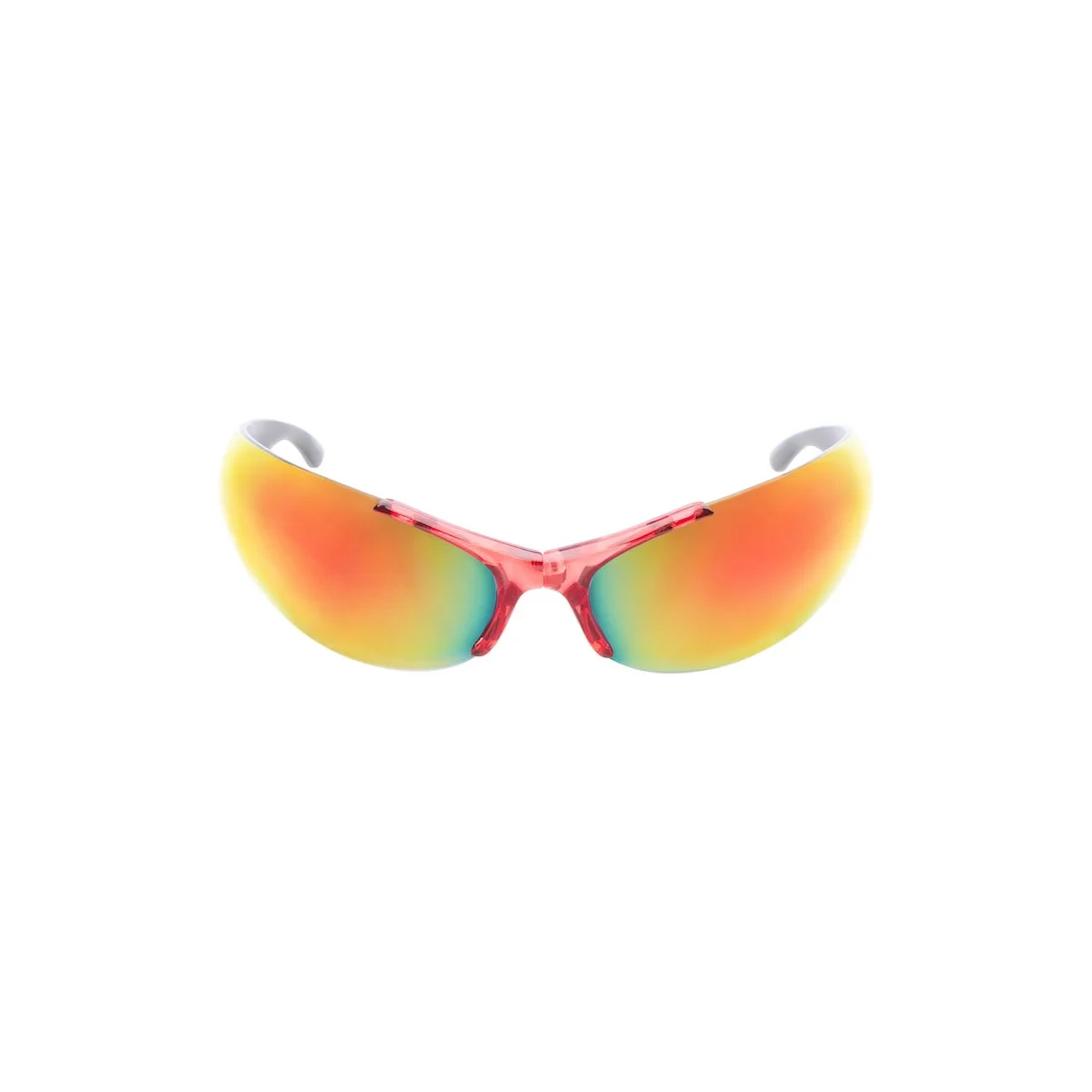 Afterhour Oval Sunglasses in transparent red bio-based injected nylon with mirror red lenses are from looks 37 and 39 of Balenciaga Fall 25 Collection. PRODUCT DETAILS • Bridge length: 0,75 inch • Bio-based injected nylon frame and temples (65% bio-based) • Oval shape • Smart fit • Balenciaga logo printed at end of the temple tips • Foldable in the middle • Click-hinge system • Lens material: Bio-Nylon • Lens category: 3 • 100% UVA/UVB protection • Not suitable for optical conversion • Made in Italy • BB0454S Material: polyamide