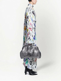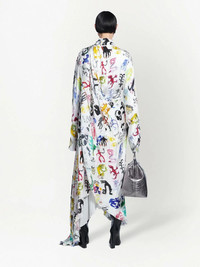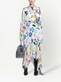 artist doodles twisted dress Highlights - Artist doodles twisted dress from balenciaga featuring white/multicolour, all-over graphic print, mock neck, twist detailing, long sleeves, draped design and asymmetric design. . Made in Italy Composition Viscose 100%