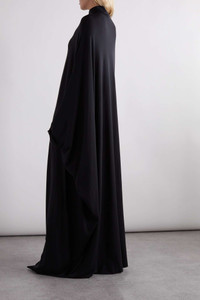 EDITORS'NOTES Creative Director Demna believes in comfortable styles that look elegant with little effort. Opening Balenciaga's Fall '22 show, this maxi dress is cut from satin-jersey with a fluid drape that enhances the asymmetric silhouette. Ground yours with point-toe boots, as on the runway. SIZE & FIT - Fits true to size, take your normal size - Designed for a loose fit - Lightweight, stretchy fabric - Model is 177cm/ 5'10" and is wearing a FR 36 DETAILS & CARE - Black satin-jersey - Slips on - 95% viscose, 5% elastane - Dry clean