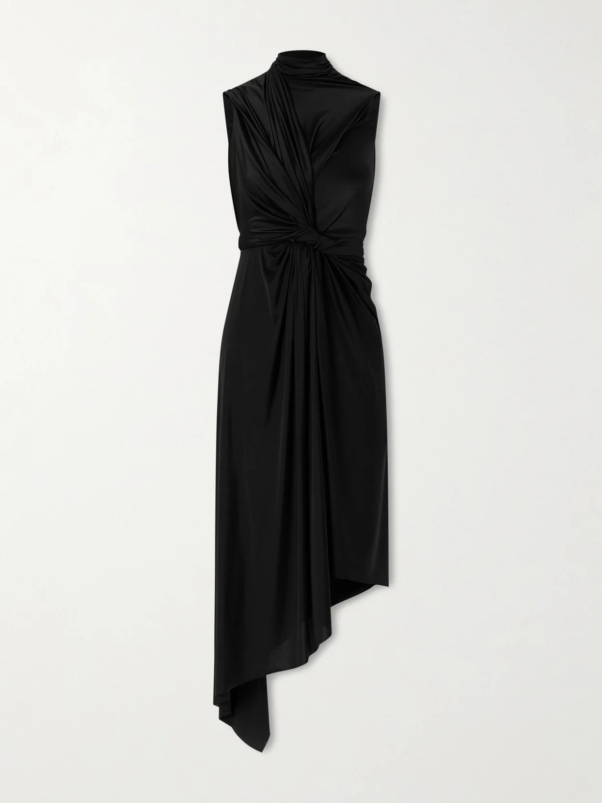 Balenciaga's dress is meticulously gathered and knotted, giving the otherwise simple style plenty of textural interest. It's been made in Italy from slinky stretch-jersey and falls to an asymmetric midi hem.