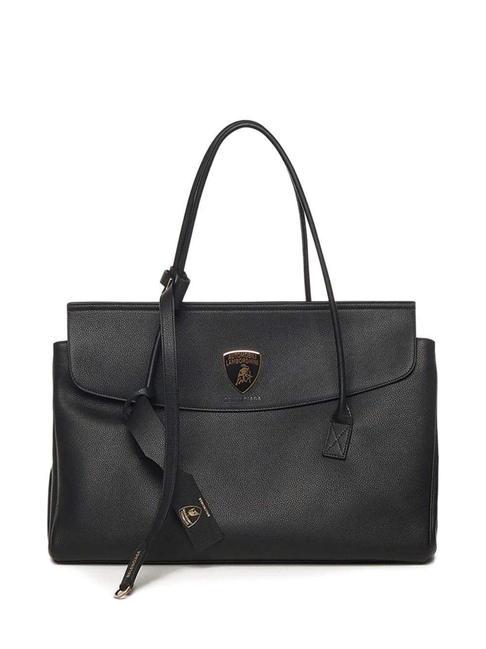 Automobili Lamborghini Carrie Carry bag Highlights - Black - Top handle - Gold-tone logo - Clasp fastening - Leather - Knot detail Made in Italy Composition Lining: Fabric 100% Outer: CALFSKIN 100% SIZE & FIT Measurement DEPTH 6.3 in(16 cm) HEIGHT 15.7 in(39.8 cm) WIDTH 18.5 in(46.9 cm)