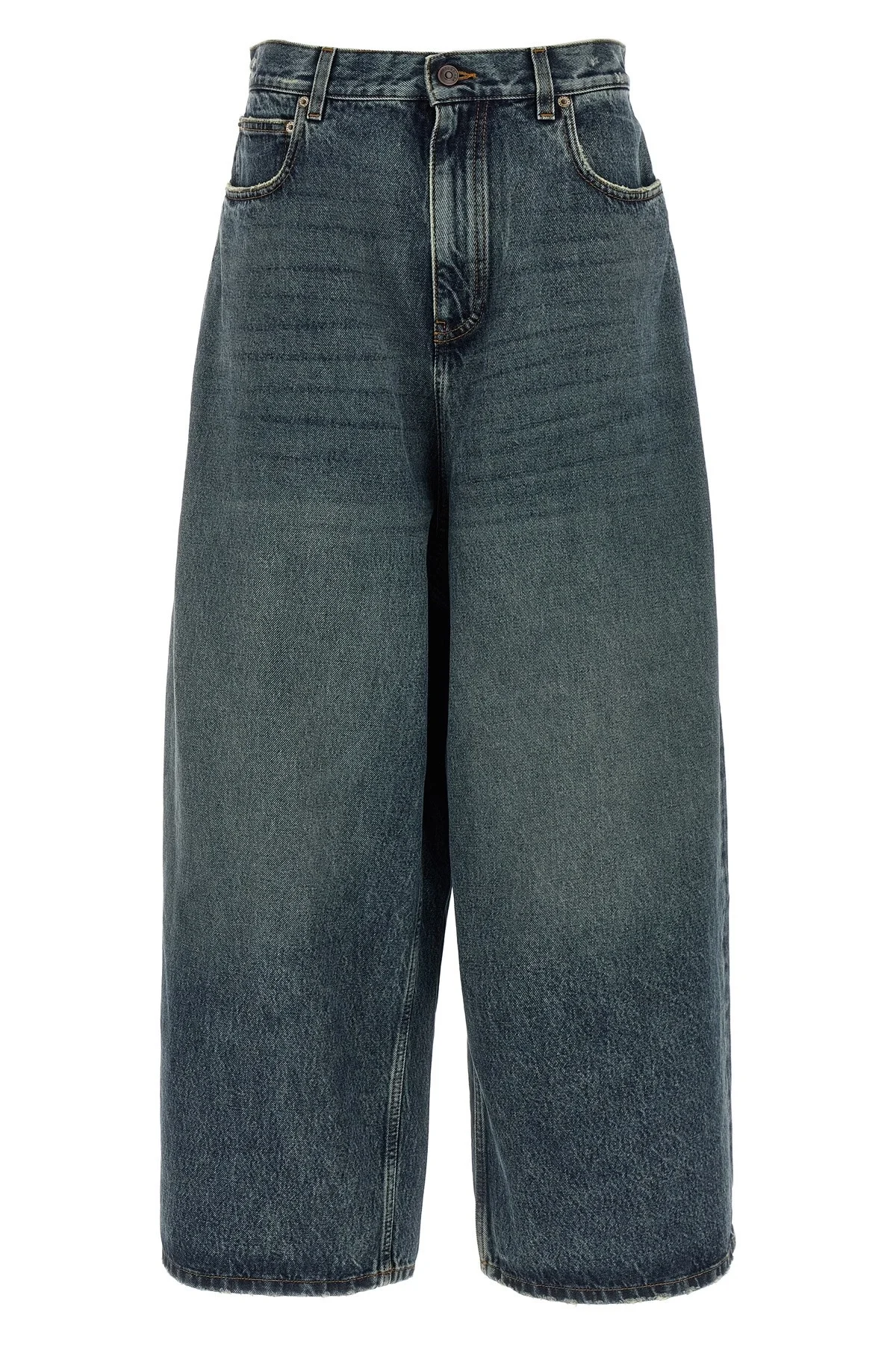cod. 872166TUW584129 'Baggy' used-effect stone washed cotton denim jeans, contrast stitching, low crotch, extra wide leg, front zip and button closure, five pockets, embossed leather logo tag with back logo. Color: Blue Size & Fit: oversized fit Composition: 100% cotton Made in: Italy