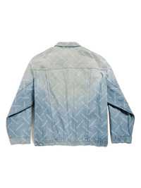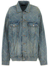 logo-print denim jacket Exaggerated proportions and branded elements define so many of Balenciaga’s designs, and this oversized trucker jacket is no exception. It’s crafted from light-wash denim to a disproportionate silhouette with dirtied fading and an all-over diagonal logo print. Highlights - Light blue - Cotton - Washed denim - All-over logo print - Classic collar - Front button placket - Two chest flap pockets - Drop shoulder - Long sleeves - Buttoned cuffs - Two side slit pockets - Waist tabs - Straight hem - When buying this unisex item, keep in mind that it is graded in standard men's sizing Imported Composition Cotton 100%