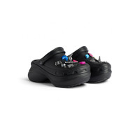 Crocs™ Mule in black rubber with Jibbitz™ charms PRODUCT DETAILS • EVA Foam • Mule • Round toe • Open at back • 5mm arch • Removable Jibbitz™ charms • Balenciaga logo embossed on strap • Debossed size at back • Tone-on-tone sole and insole • Made in China • Crocs™ collaboration Upper: EVA - Sole: EVA - Insole: EVA