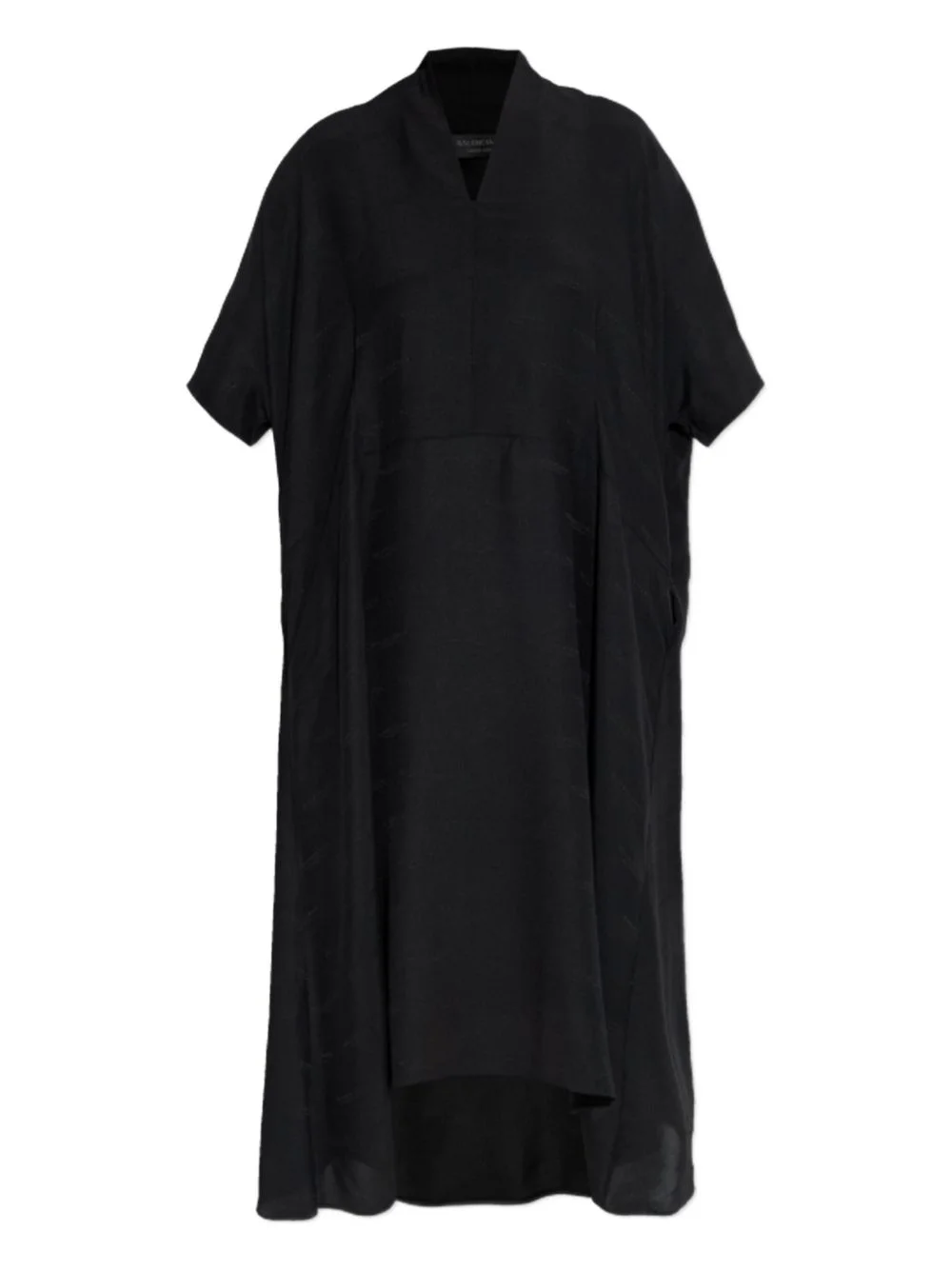 V-neck midi dress Highlights - Black - V-neck - Short sleeves - Asymmetric hem - Silk Made in Italy Composition Silk 100% Washing instructions Read Manufacturer Guidelines