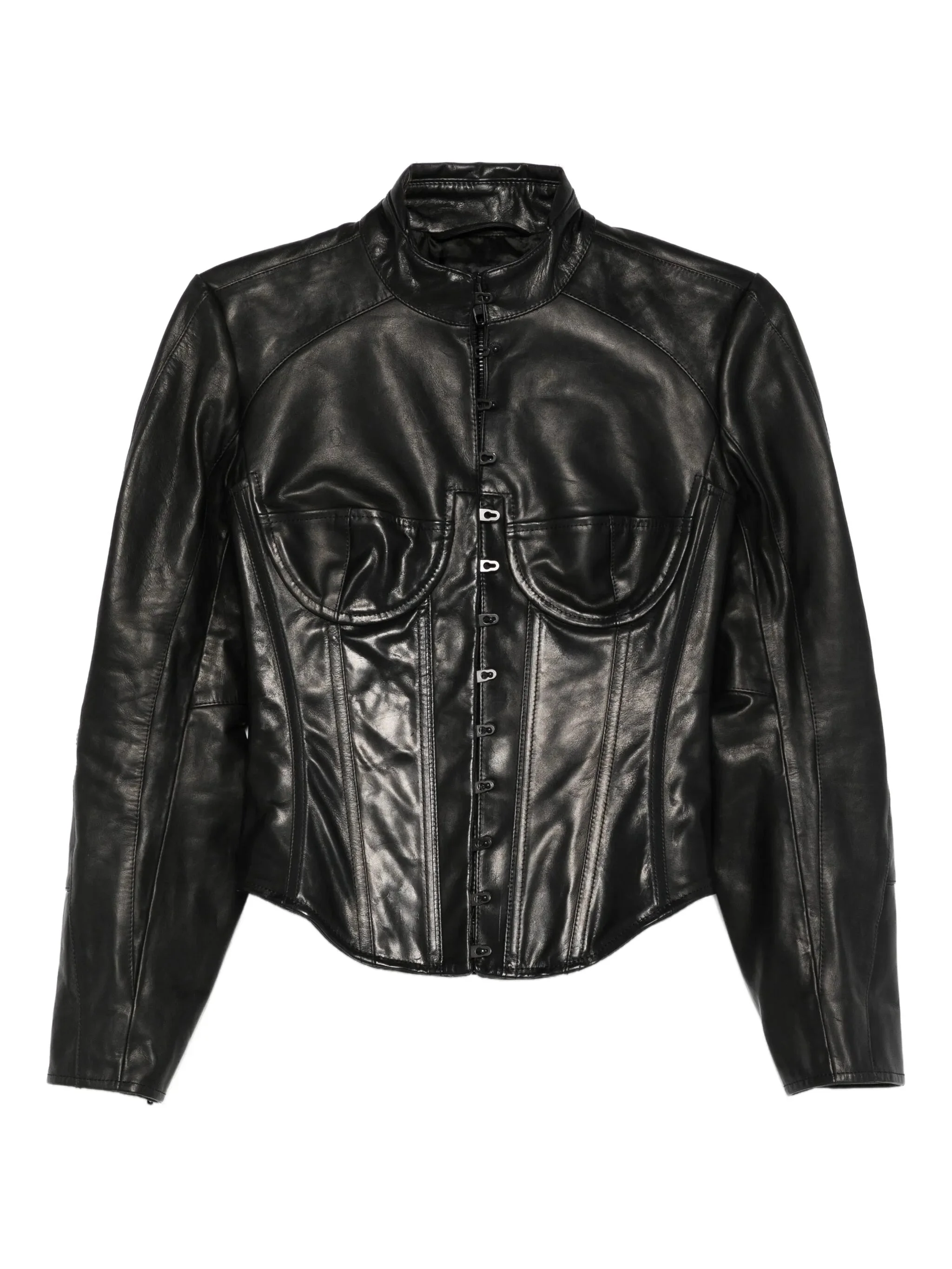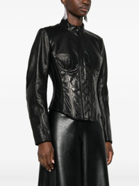 black stand-up collar front zip fastening long sleeves corset style - Color: BLACK - Made in: Bangladesh - Designer Style ID: 850491 TOS17 1000 Composition and care Outer Composition Calf Leather: 100.0%