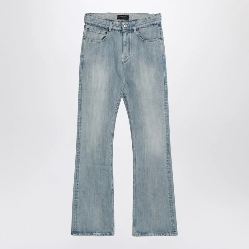 Balenciaga jeans in light blue cotton denim with a faded effect, characterized by a low waist with raw cut details and belt loops, front closure with zip and button, five classic pockets, and a worn logo patch on the back. Gender: Women Material: Fabric I: 100% Cotton / Lining: 65% Polyester - 35% Cotton Color: BLUE Made in: IT Product ID: 814225TRW59/Q_BALEN-2540 *Import tax/duty will be calculated at checkout (If applicable)
