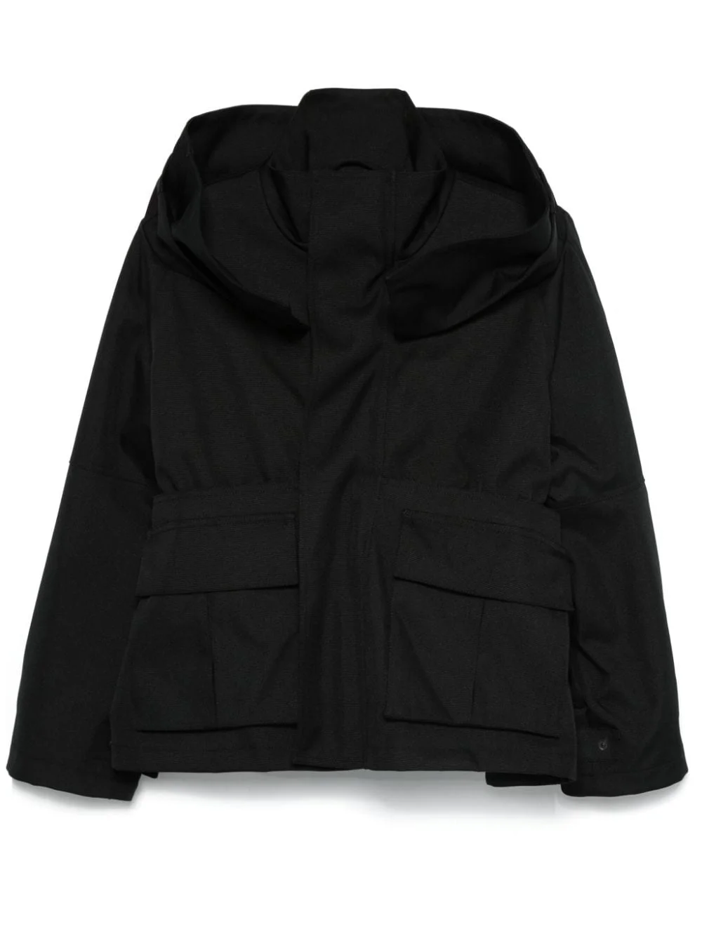 canvas jacket Highlights - Black - Canvas - Front zip fastening - Concealed front press-stud fastening - Stand-up collar - Long sleeves - Press-stud fastening cuffs - Layered ribbed cuffs - Panel detailing to the shoulders - Two front flap pockets - Side press-stud fastening adjustment - Internal zip-fastening pockets - Internal drawstring fastening waist - Quilted lining - Straight hem Made in Italy Composition Lining: Polyester 100%, Cotton 89%, Silk 60%, Polyacrylic 40%, Polyamide 9%, Elastane 2% Outer: Polyurethane 100%, Polyester 100% SIZE & FIT Model measurements Height 5 ft 8 in(1.72 m) Bust/Chest 31.88 in(81 cm) Hips 34.64 in(88 cm) Waist 23.62 in(60 cm) FittingInformation Designed for an oversized fit, offering additional room throughout The adjustable drawstring means that you can adjust this piece’s fit to suit your comfort and preference Made from a midweight non-stretch fabric